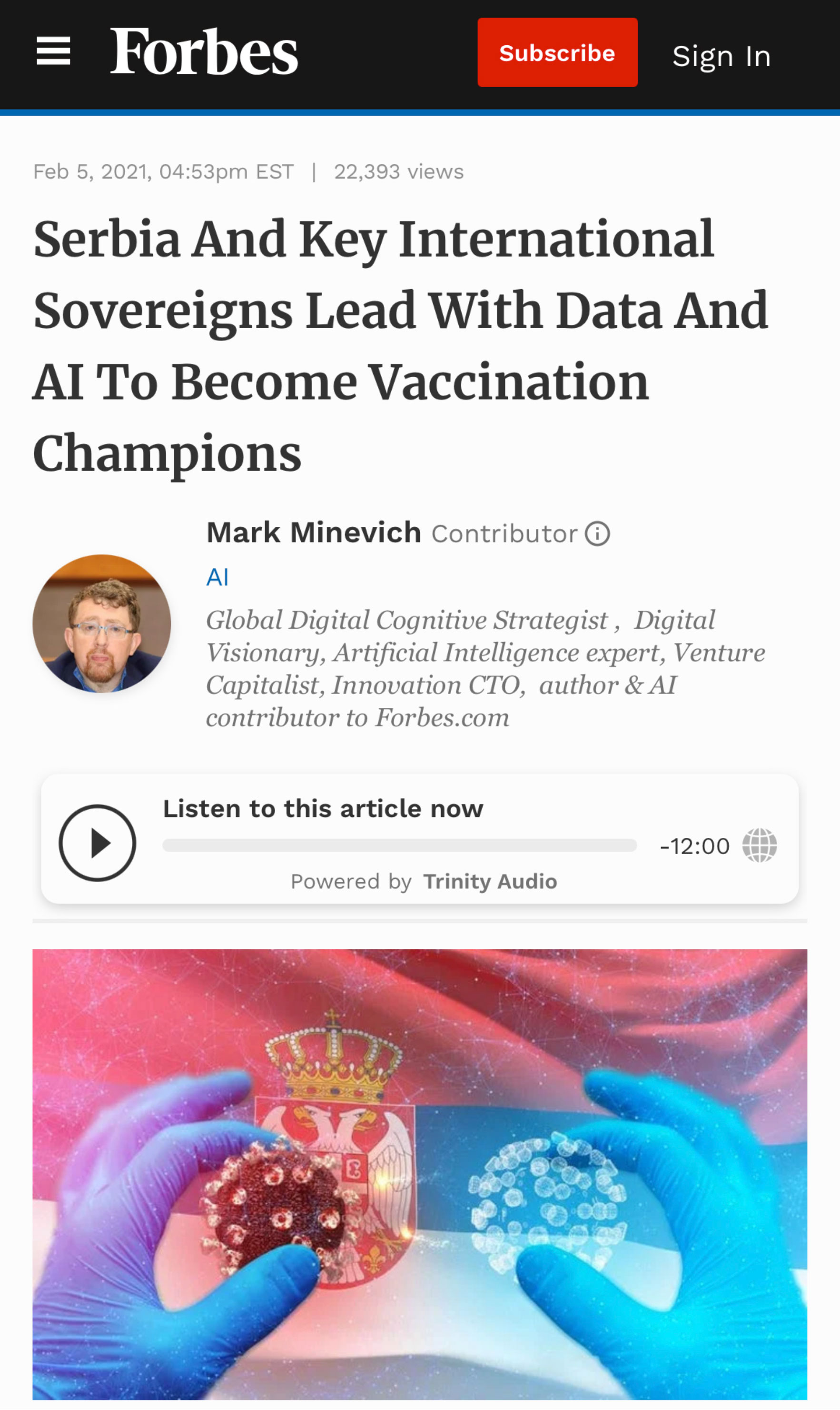 The Institute for Artificial Intelligence Research and Development of Serbia aims to become a producer of AI leaders in Serbia and a hub for AI in the SEE region. The Government's efforts have positioned Serbia as the best regional destination for IT investment and earned the rank of 46th out of 172 countries on the Government AI Readiness Index 2020. It is also the best ranking in the SEE.