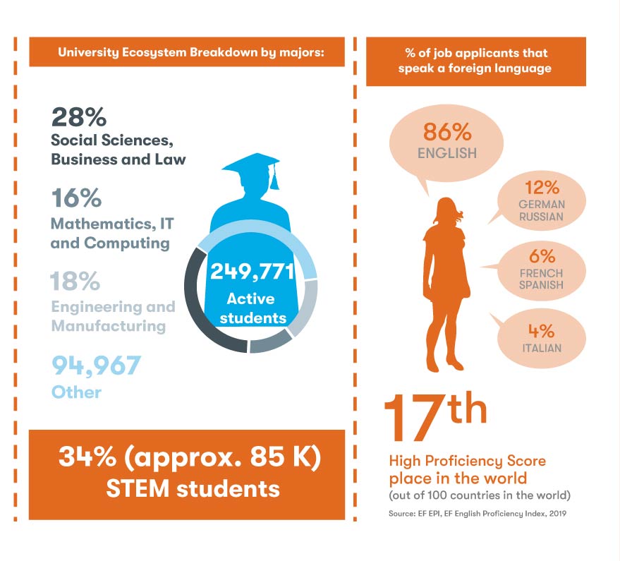 8 universities, 4 Science Technology Parks, 15 startup centers, 20+ co-working hubs, 5 IT clusters and lots of industry events